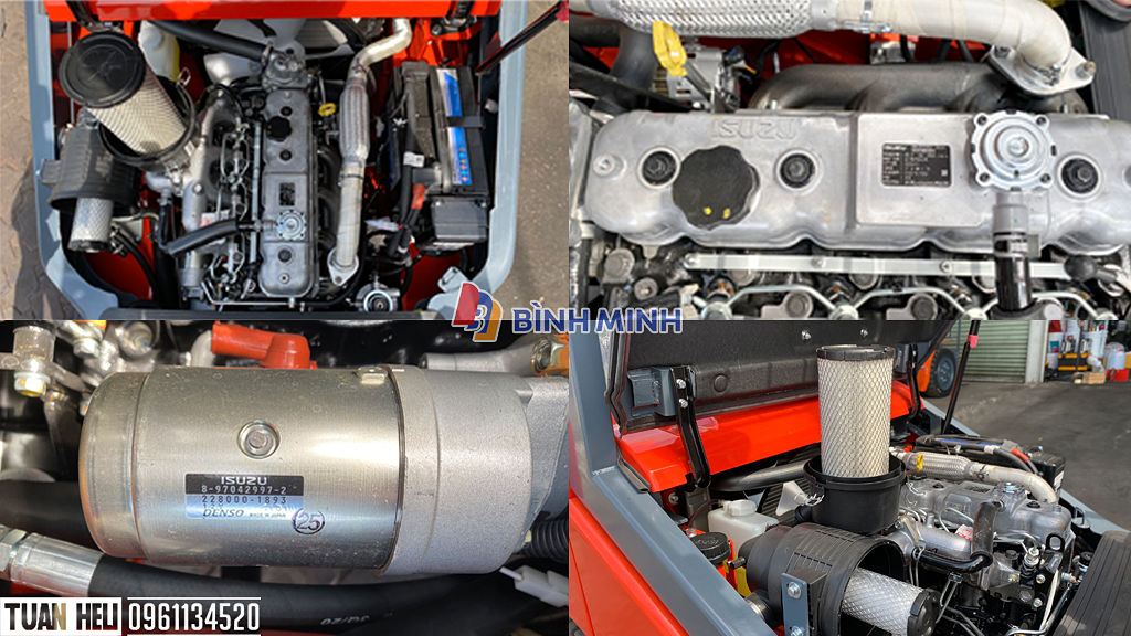 1. Khoang động cơ ; 2. Động cơ ISUZU 4JG2 ; 3. Củ đề Denso Japan ; 4. Lọc gió lõi kép