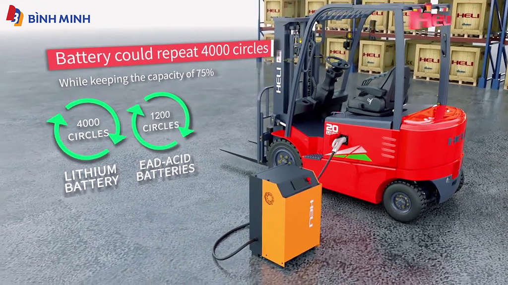 Xe nâng điện HELI 2 tấn sử dụng Acquy lithium Chì được Công Ty TNHH Xe Nâng Bình Minh cung cấp độc quyền tại Việt Nam. Thời gian bảo hành dài hạn, phụ tùng thay thế chính hãng luôn có sẵn tại kho. Chính sách hỗ trợ khách hàng sau bán hàng theo tiêu chuẩn HELI toàn cầu.
